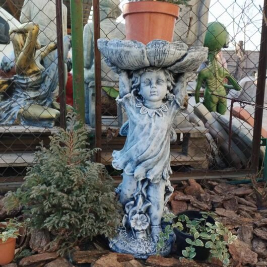 Головна / Товари для саду та ландшафтного дизайну / Декоративні садові фігури / Садові фігури казкових персонажів / Садові фігури фей / Бетонна фігура для саду “Фея з квіткою”