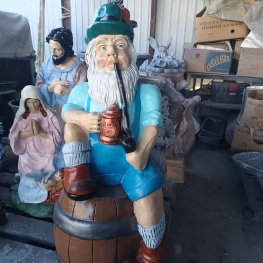 Головна / Товари для саду та ландшафтного дизайну / Декоративні садові фігури / Садові фігури казкових персонажів / Садові фігури гномів / Фігурка для саду “Гном на бочці”