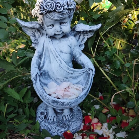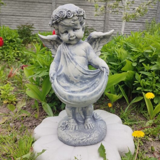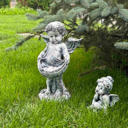 Головна / Товари для саду та ландшафтного дизайну / Декоративні садові фігури / Садові фігури янголів / Садова фігура “Ангел з полотном”